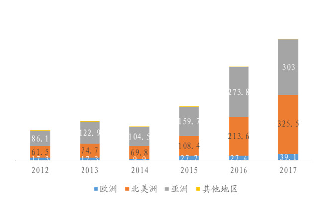 從全球各地區(qū)的出貨兆瓦數(shù)來看,目前北美與亞洲的燃料電池市場呈現(xiàn)分庭抗禮的局面,17年北美的出貨兆瓦數(shù)甚至高于亞洲(北美:325.5MWvs亞洲:303MW)。