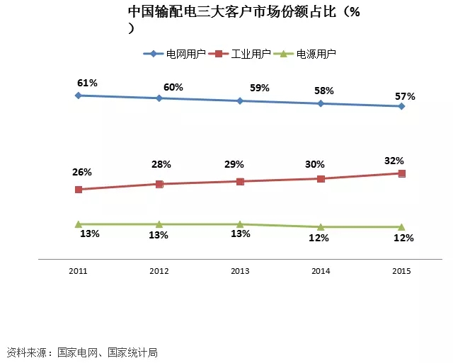 工業用戶需求將隨制造業保持高速增長,將成為未來輸變電行業重要支柱。