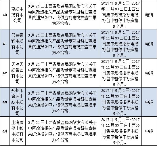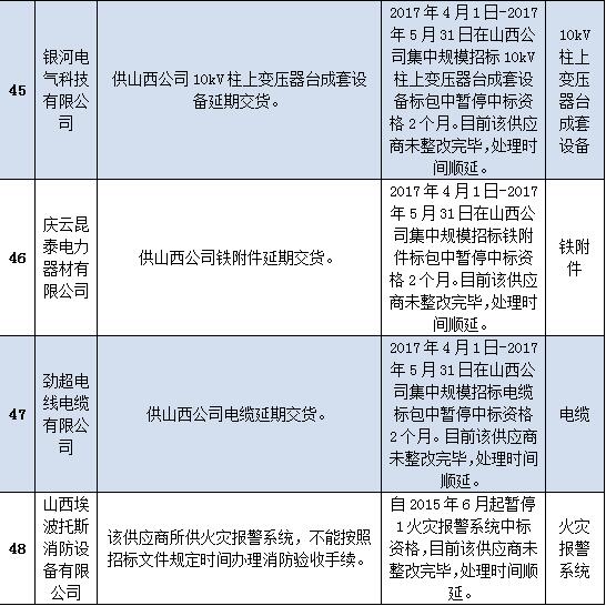 國網(山西)供應商不良行為處理情況的通報(2017.9)
