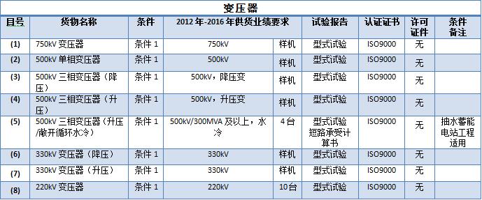 國網輸變電項目2017年第六次變電設備(含電纜)招標采購公告 220-750kV變壓器142臺
